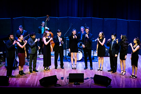 Students in the Masters of Music in Jazz Vocal Performance degree program are serious about developing their understanding and skill in all facets of jazz performance including improvisation, composition, arranging, and vocal technique in solo and ensemble jazz and contemporary styles. This program of study is designed for students possessing a bachelor's degree in jazz studies-jazz voice or jazz vocal performance. Students who hold an undergraduate degree in a related music area with professional jazz performance experience may also be successful candidates for this program. Students experience a wide variety of learning environments with our faculty who are established teachers and industry professionals. The MSJV master's program provides our students with opportunities to rehearse and conduct a major performance jazz vocal ensemble and gain an understanding and knowledge of jazz pedagogy. Our graduates are working in many areas of performance in the music industry as: We look forward to welcoming you to the Studio Music and Jazz Program at the Frost School of Music! For more information regarding the curriculum, please visit the Academic Bulletin.